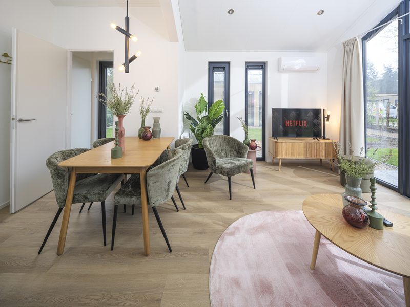 Voor extra comfort en gemak is de Tiny Lodge voorzien van airconditioning, zodat je het hele jaar door kunt genieten van een aangenaam binnenklimaat, ongeacht het weer buiten.